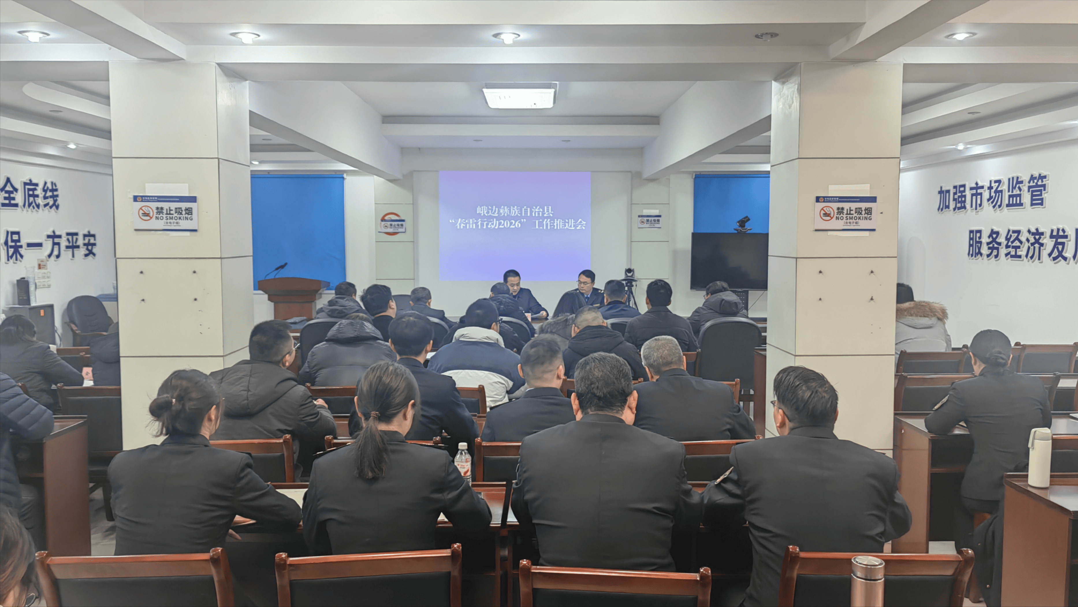 1月20 日,四川省乐山市峨边彝族自治县召开“春雷步履2026”工做推进会。自治县人平易近副县长陈果掌管会议并讲线个乡镇食物平安工做分担带领,县教育局、县等相关部分分担担任人,县市场监管局班子及全体法律人员加入会议。