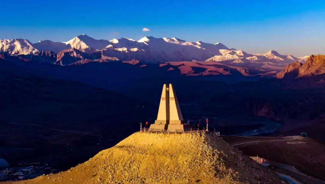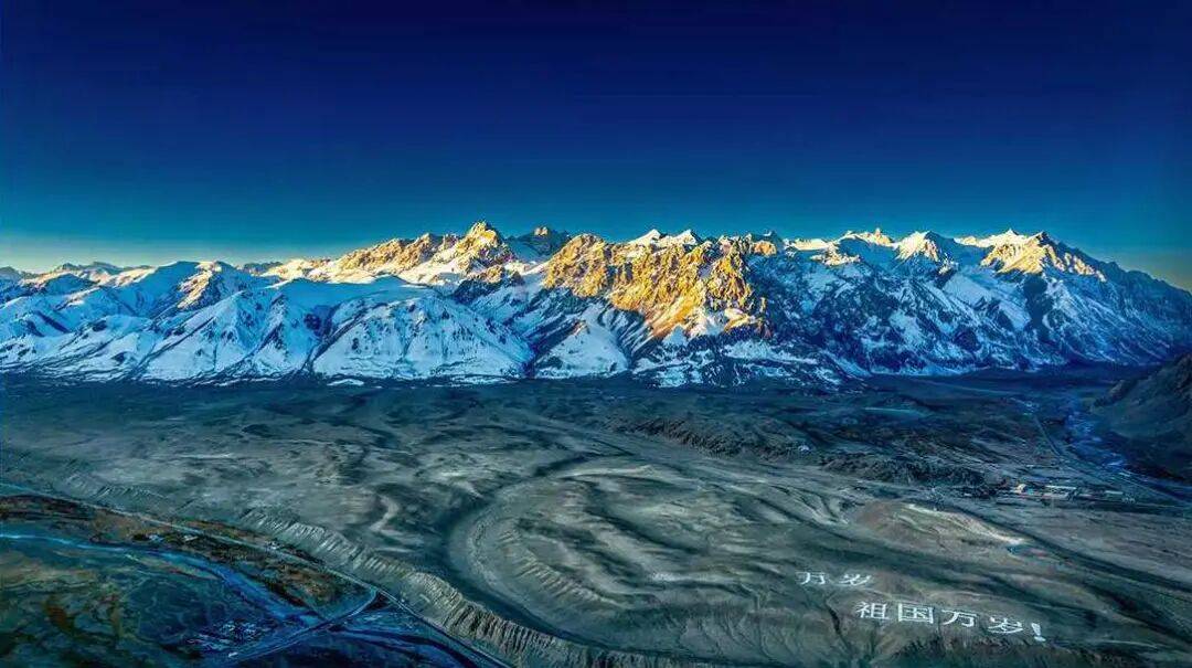 中国西极:经万万年奔赴后的两条世界级巨型山系天山(结尾)取昆仑山(起始端)的“握手”,天山山脉呈驼色(或红褐色),昆仑山山脉呈黛色(或青灰色),强烈的色彩分界,仿佛一幅雄浑的画卷,构成了奇特的地质奇迹。
