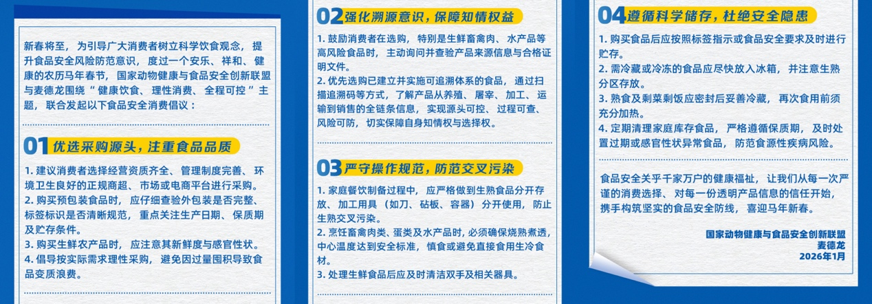 近日,为守护“舌尖上的团聚”,指导科学健康的消费,麦德龙取国度动物健康取食物平安立异联盟(CAFA)正式联袂发布《关于马年春节期间食物平安取健康炊事的结合》,为消费者供给全流程的食物平安,鞭策行业构成“健康饮食、消费、全程可控”的共识。