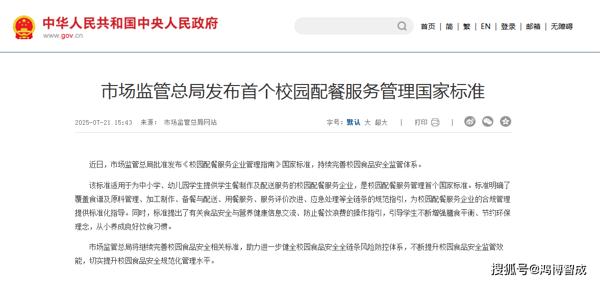 1。 准入取天分的“高门槛”:《指南》将对校园配餐企业的准入前提、硬件设备(如厨房面积、功能区划分、设备从动化程度)、人员天分(如养分师、食物平安办理员配备)提出明白且高于通俗餐饮的要求,从泉源上筛选出优良、有实力的办事商。2。 过程节制的“精细化”:它将对企业从原料采购、清洗切配、烹调加工到分餐、配送、留样的全流程制定极为详尽的操做规范。例如:温度取时间节制:对食物烹调核心温度、配送餐箱温度、从出锅到学生用餐的时间间隔等做出强制性。性条目:明白供应高风险食物(如四时豆、野生蘑菇等),并对油炸、腌制类食物的供应频次进行。“互联网+明厨亮灶”:要求企业实现后厨环节环节的及时,并向家长、学校及监管部分,实现通明化操做。3。 养分健康的“专业化”介入:《指南》不只关心“平安”,更关心“养分”。它将要求企业配备专业养分师,按照学生春秋阶段和发展发育需求,并按期评估和公示,无效应对儿童青少年超沉肥胖、养分不良等双沉挑和。专家概念:该《指南》是针对校园这一特殊、人群的“定制化”和“升级版”处理方案。它标记着校园配餐办理从“吃热、吃饱”的初级阶段,正式迈入“保障平安、养分、可口”的高质量成长阶段。三、压实企业从体义务